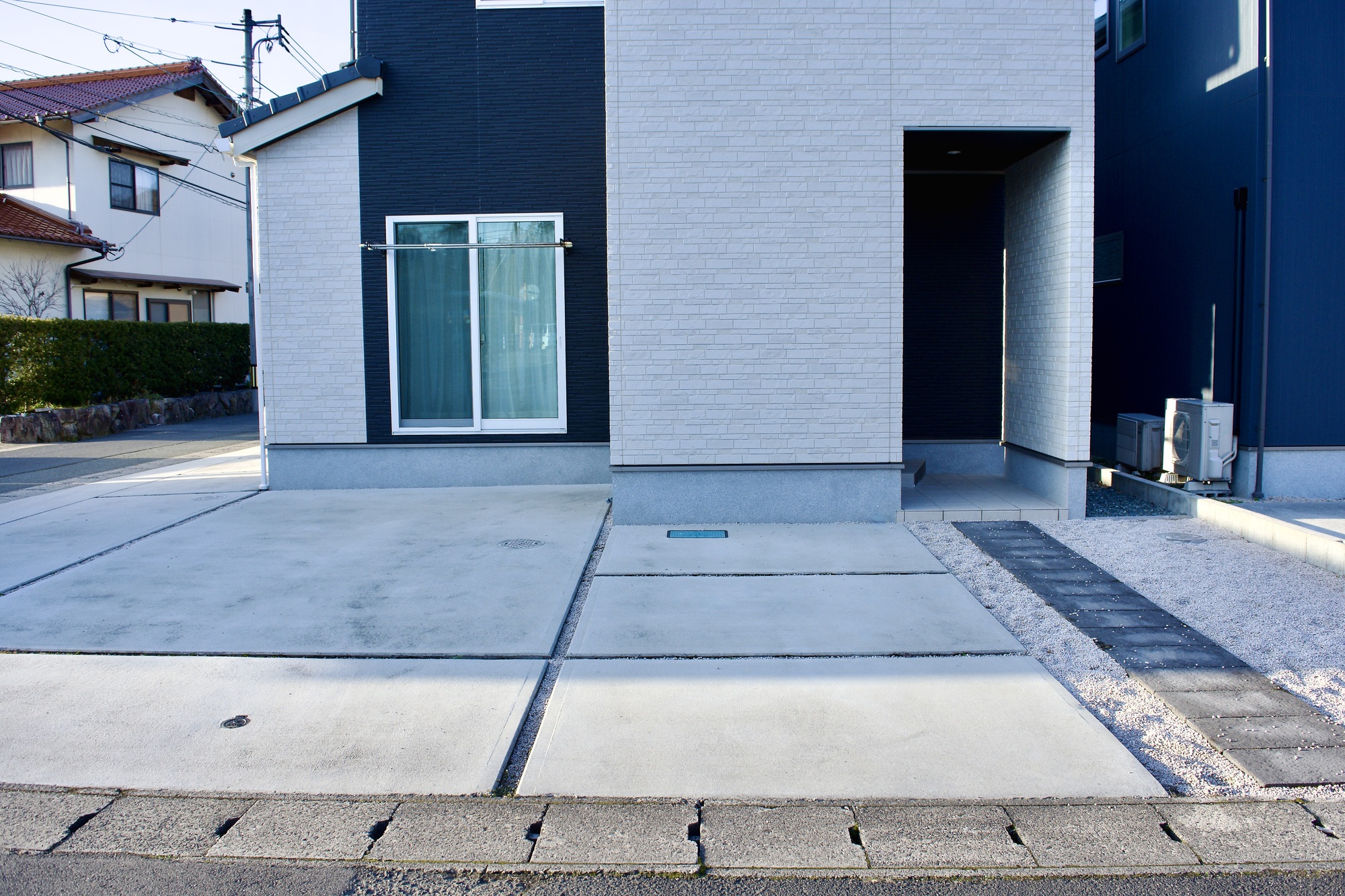 車の出入りがしやすく、歩行者動線を妨げない形状を確保。 - 舗装材の選定