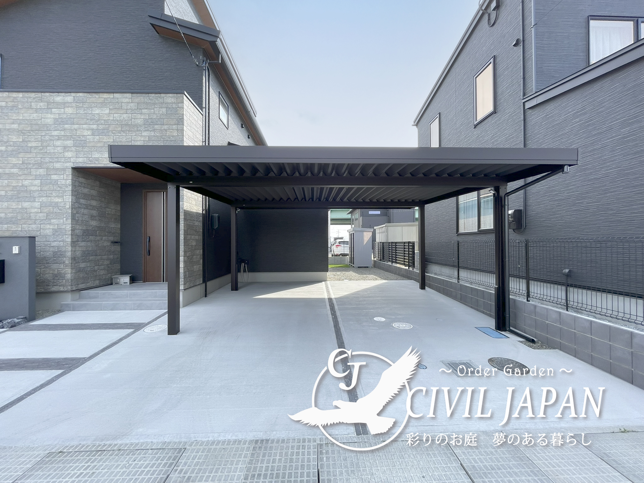 標準仕様の2台用カーポートを採用し、