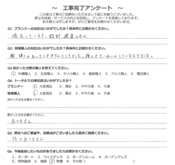 満足しています。設計、提案ともに。施工もていねいにしていただきました。