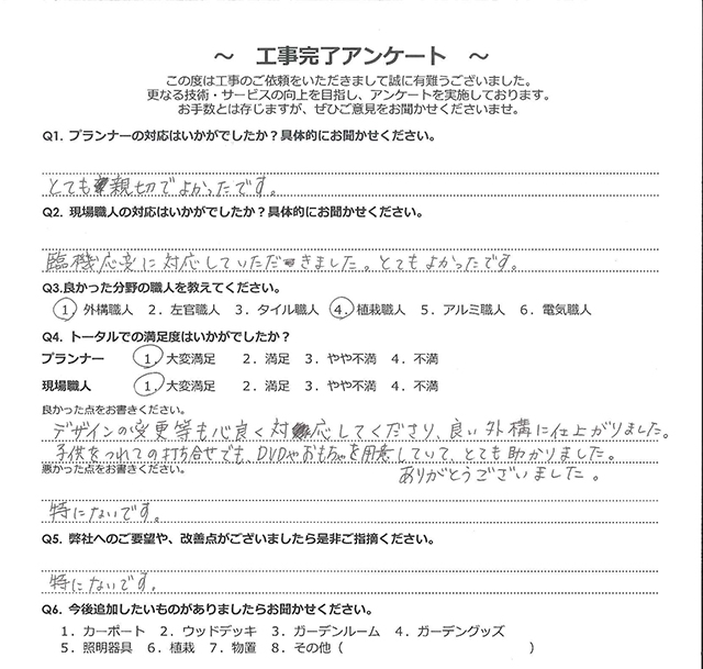 デザインの変更等も心良く対応してくださり、良い外構に仕上がりました。