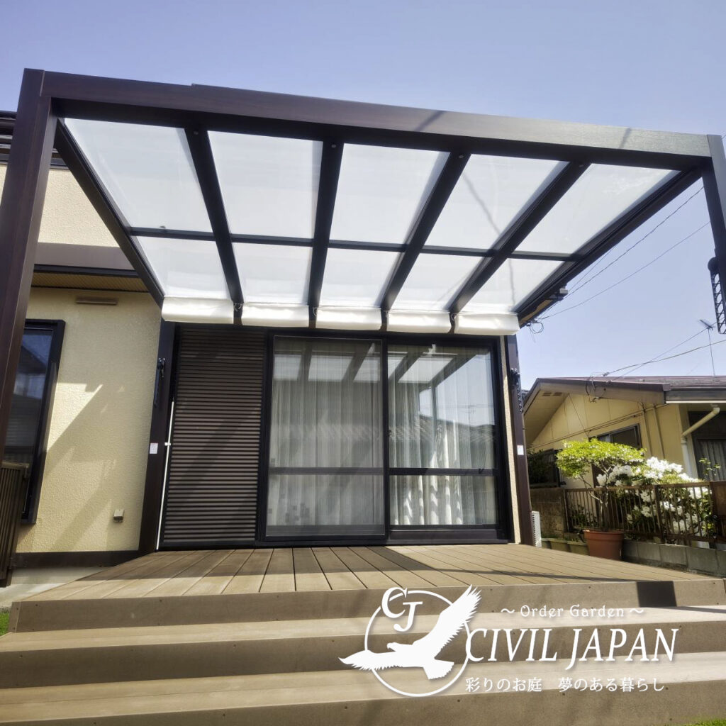 【塩竃市 デッキ・Gルーフ施工事例】木製デッキを卒業し、プラスGで上質なアウトドア空間を実現