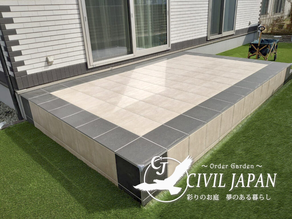- お庭にタイルデッキを施工し、その周囲は人工芝で仕上げたい