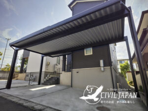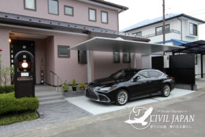 駐車スペースにはスタイリッシュなカーポートを設置し、雨・雪から愛車を守ります。