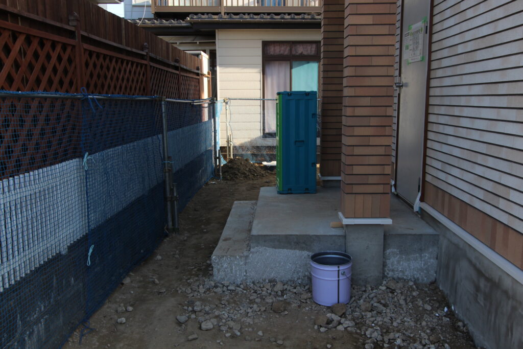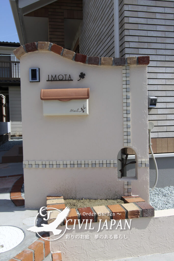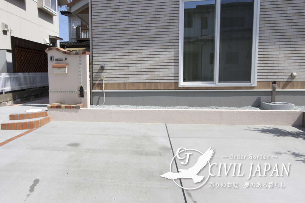 道路と敷地の高低差があるため土留めをしてアプローチに階段をつくりました。