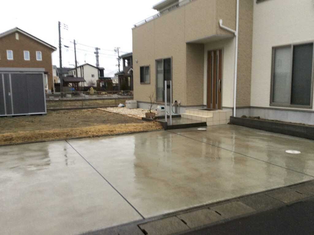 雑草が生えて、草取りが大変で・・・。でも砂利を敷くだけじゃ寂しいし・・・。なにかいい方法はないかなぁとお考えの方に今回はコンクリート平板と天然石を使った施工例をご紹介します。