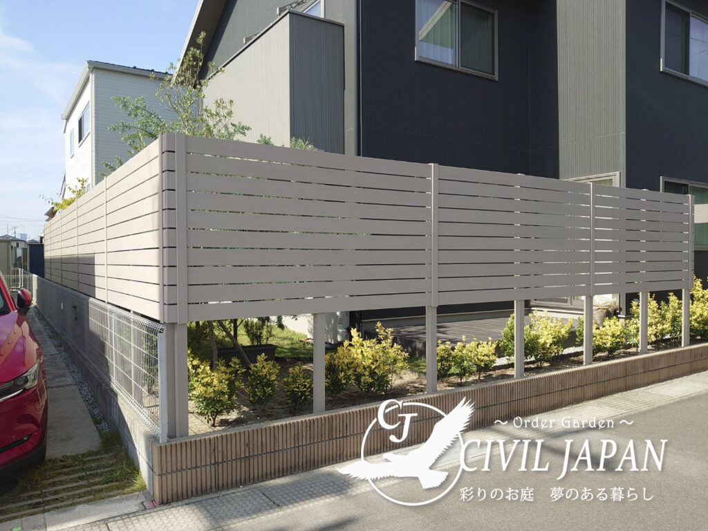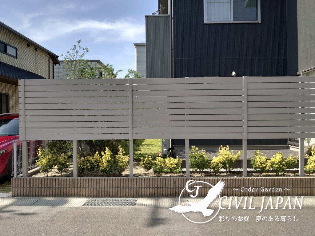 お客様からは「道路に面した境界沿いにフェンスがなく、家の中が丸見えになってしまう。外からの視線をしっかり遮りつつ、デザイン性にもこだわりたい」とのご相談をいただきました。