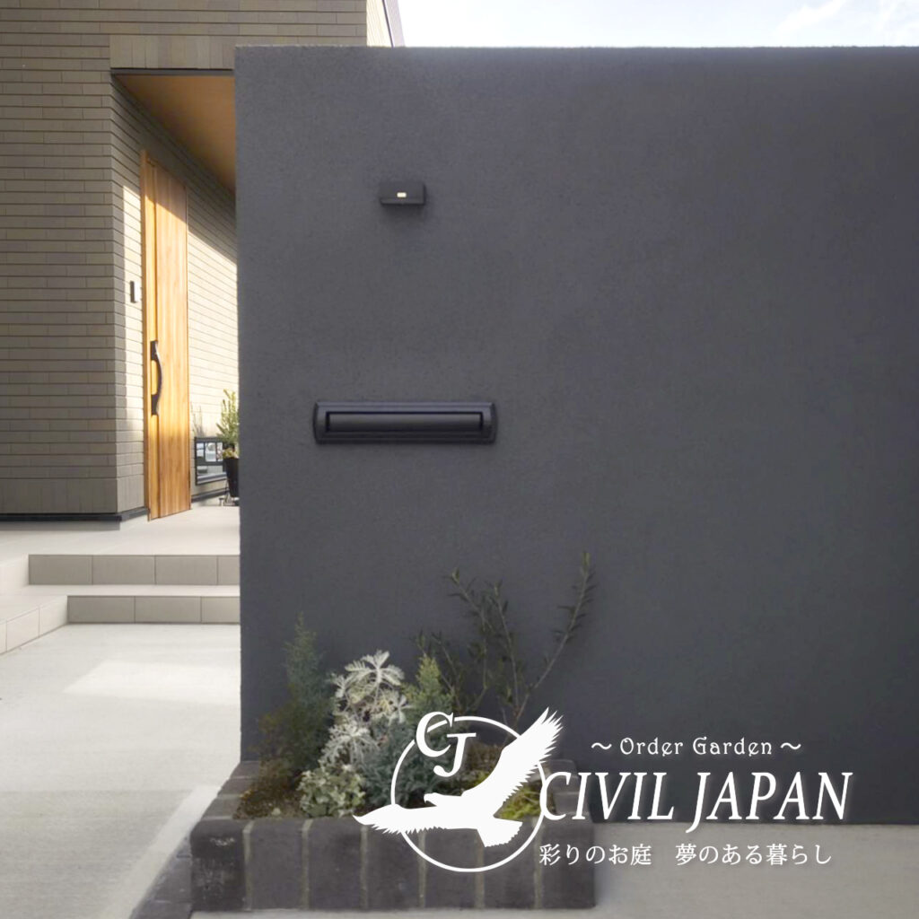 利府町での新築外構工事では、グランドアートウォールを活用したプライベートガーデンづくりを行いました。