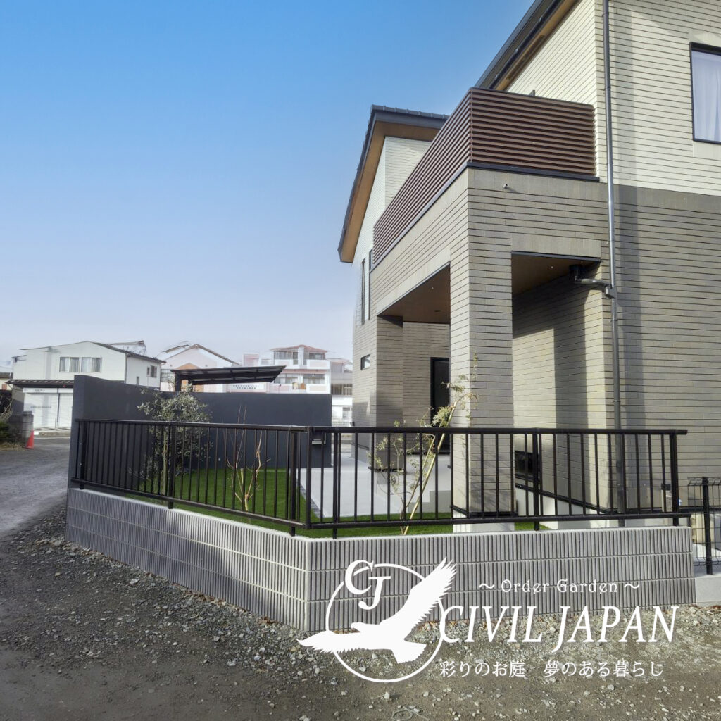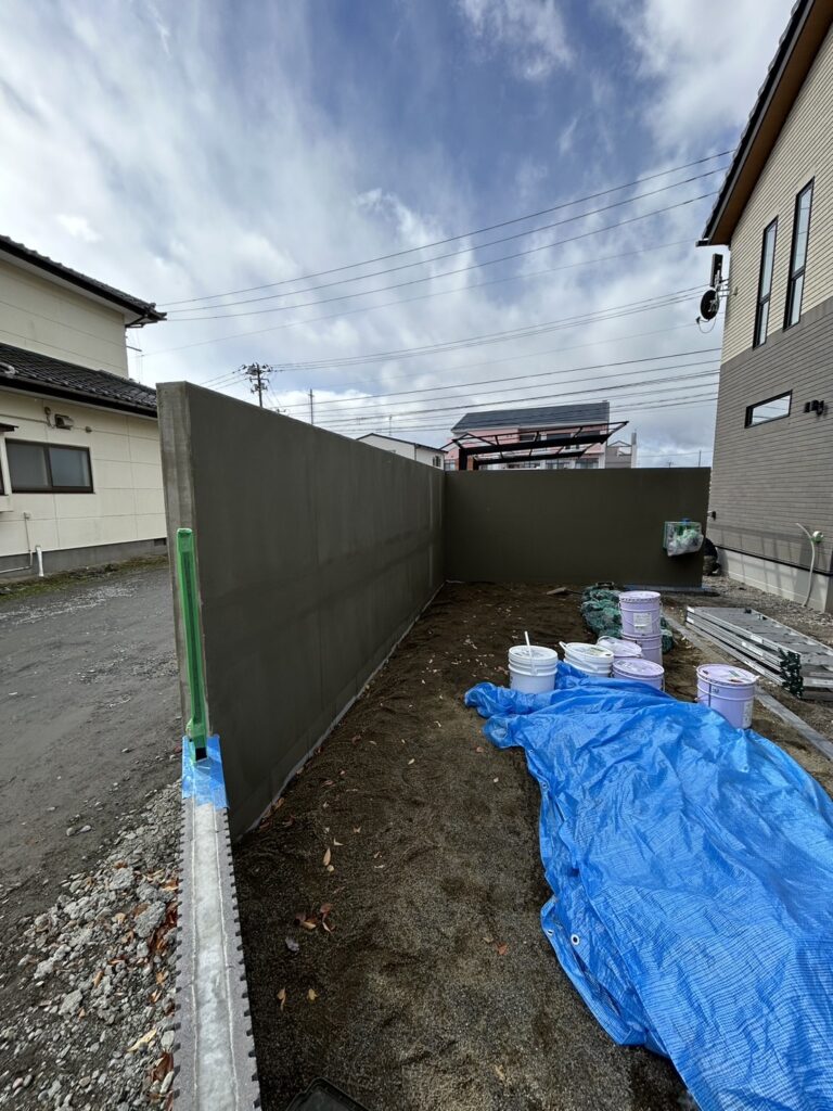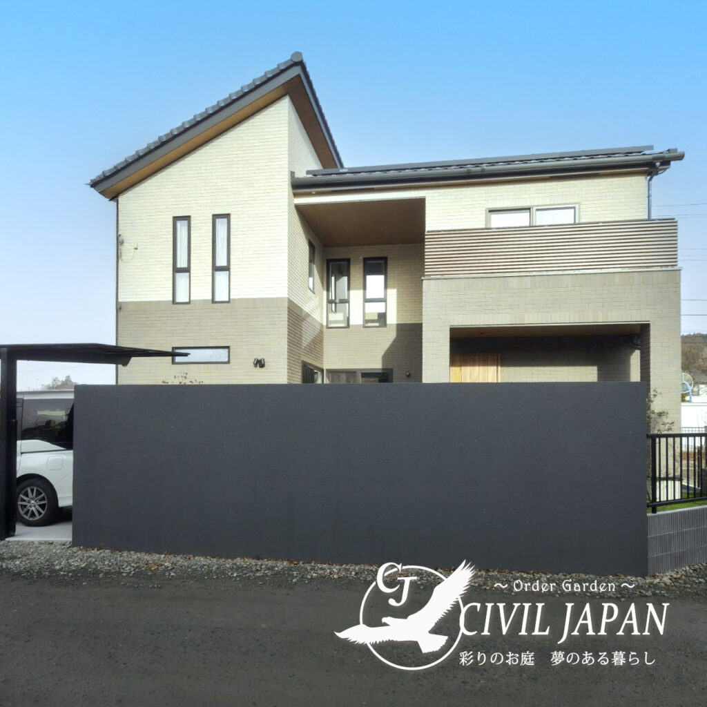 利府町で新築住宅を建てられたお客様から、「リビング前の庭をグランドアートウォールで囲って、落ち着きのあるプライベート空間をつくりたい」とのご依頼をいただきました。