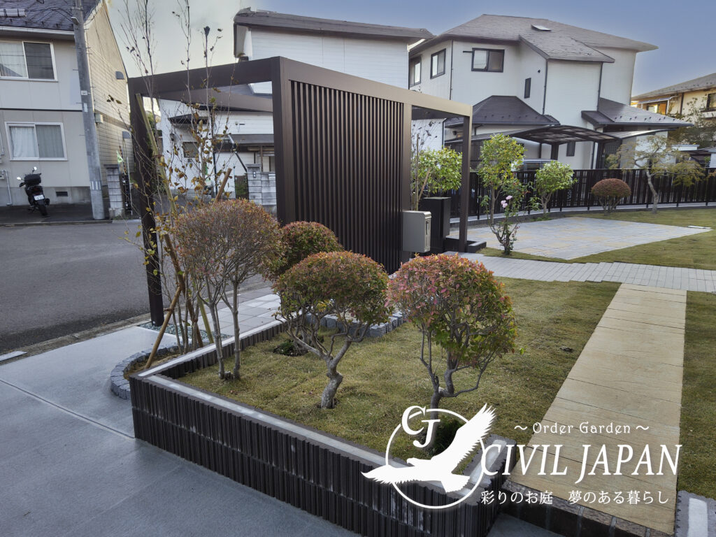 舗装材の配置とファサードデザインにより、機能性とデザイン性を高いレベルで両立しています。植栽の緑が映える外構になり、明るく開放感のある仕上がりになりました。」