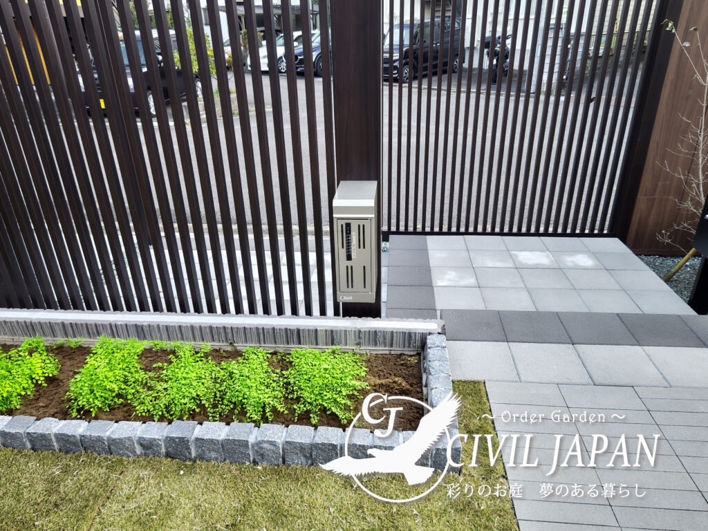 - コンクリートボーダーと平板敷きでモダンな印象に