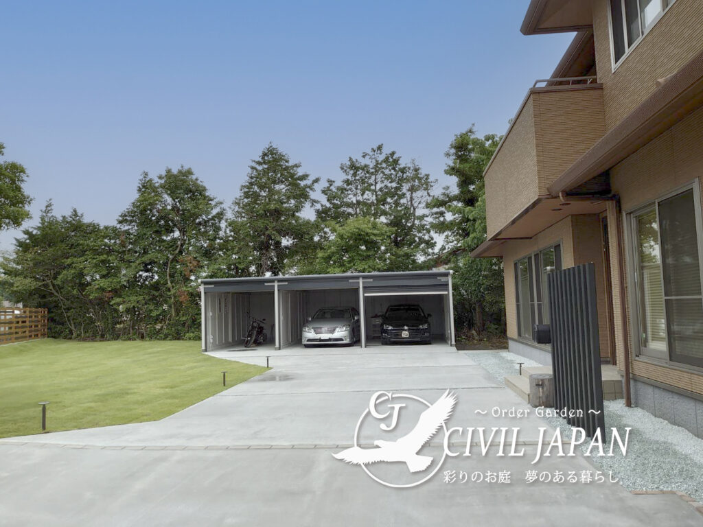 「外構リフォームとガレージ設置で、車の保護はもちろん、庭も自然豊かな空間になった」と大変ご満足いただけました。