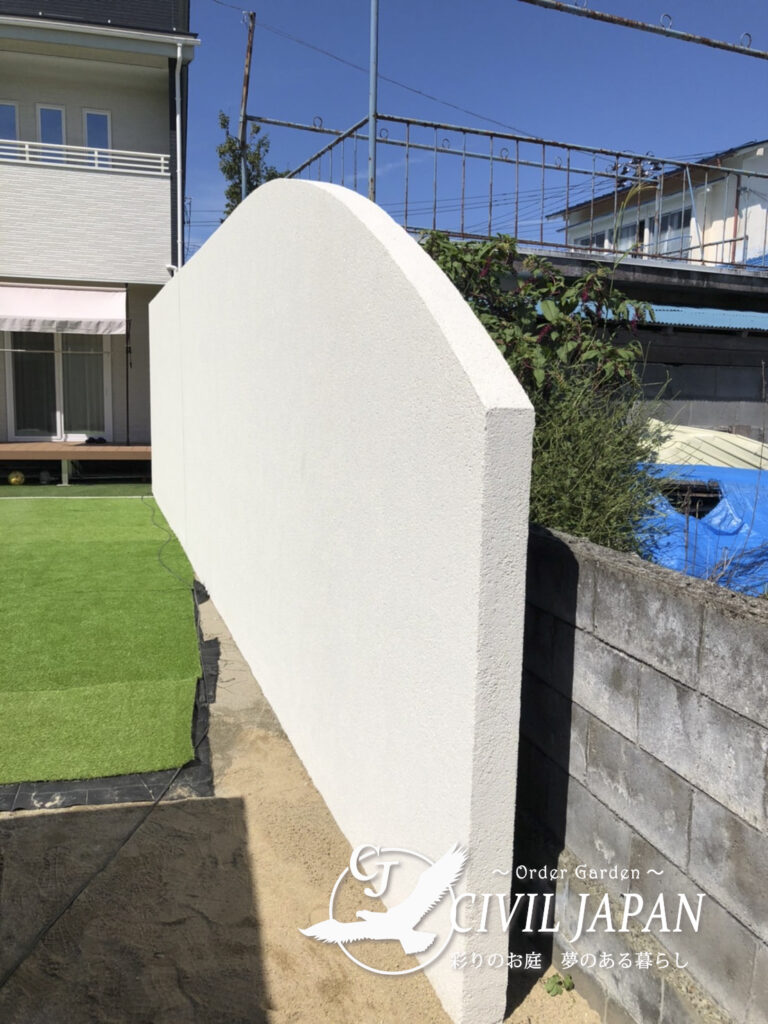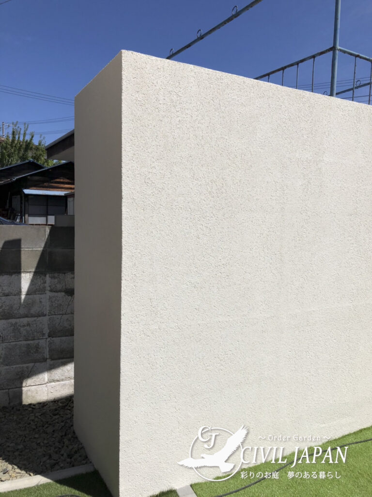高さ2.3mのグランドアートウォールが完成すると、視線はしっかりと遮られ、安心して過ごせるプライベート空間が誕生しました。